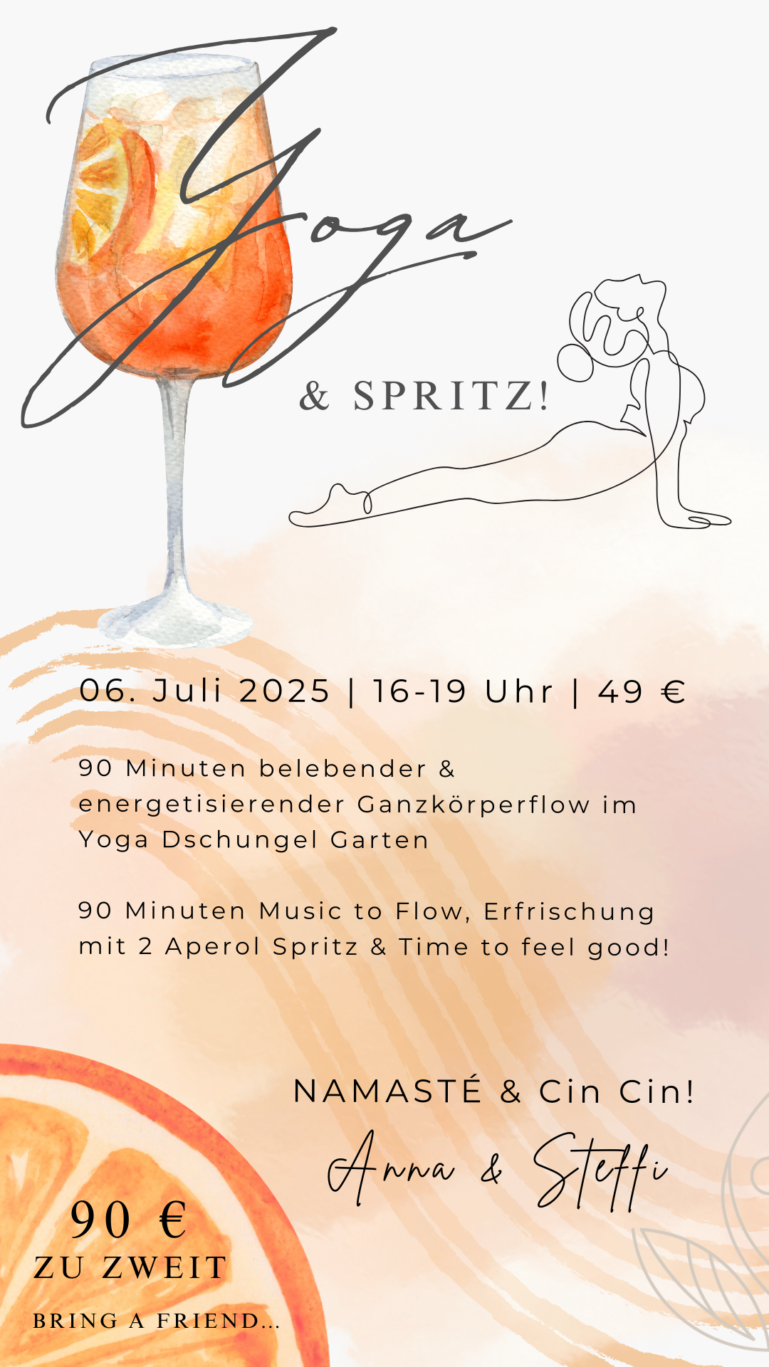 90 Minuten Music to Flow, Erfrischung mit 2 Aperol Spritz (oder natürlich alkoholfreier Alternative) & ganz viel Time to feel good! ✌🏼