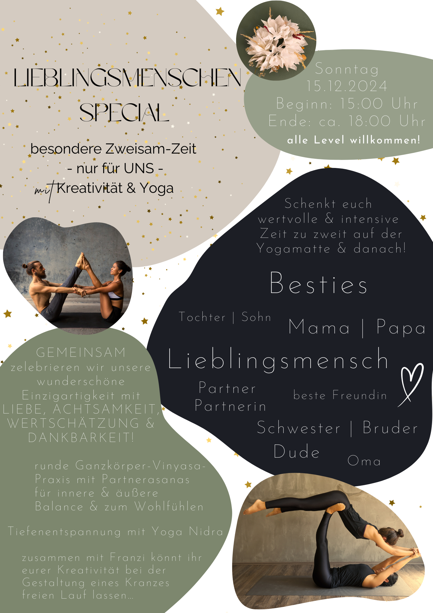 Schenkt euch wunderschöne Zeit zu zweit - auf der Matte und danach mit der Gestaltung von Kreativen Kränzen.